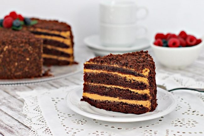Как быстро и вкусно приготовить шоколадный торт «Пеле» со сгущенным молоком. Подробный пошаговый рецепт с фото расскажет как приготовить эту вкуснятину. Иногда вечерком ну очень хочется сладенького вкусного тортика. Разве нужен повод, чтобы порадовать своих родных и близких? Настало время удивить своих домочадцев Шоколадным тортом "Пеле" со сгущенным молоком. Коржи получаются нежными с приятной текстурой, хорошо пропитываются и не требуют высоких навыков мастерства кулинарии. Вареная сгущенка добавляет карамельный вкус, а кофейно-коньячная пропитка дает свои пикантные нотки. Уже потекли слюнки? Следуйте рецепту с фото пошагово в домашних условиях. Ингредиенты: для теста: для пропитки коржей: для крема: Смотрите также: Торт «Египетский» в домашних условиях Пошаговое приготовление: Шаг 1. Взбивать яйца миксером не менее 5 минут до образования густой пены. Не выключая миксер добавить ваниль и частями добавлять сахар. Шаг 2. Растопить масло в микроволновой печи или на водяной бане.