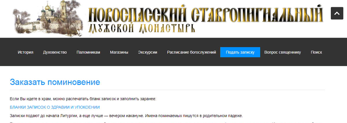 Бывают случаи, когда мы не можем по каким-то причинам подать сами записки в храме. Например, как сейчас при ситуации с коронавирусом. Многие монастыри начали прием записок онлайн. Можно заказать молитвенное поминовение Вас и Ваших близких: о здравии и о упокоении. Вы можете даже заказать поставить свечу перед выбранной монастырской иконой. Для этого заполните форму на странице, выберите нужные требы и внесите пожертвование, выбрав форму оплаты: банковские карты, электронные кошельки.После Вам поступит письмо с уведомлением о принятии пожертвования и проведения поминовения. Ссылки на страницы монастырей для заказа треб. Спасо-Преображенский Валаамский мужской монастырь Новоспасский ставропигиальный мужской монастырь Спасо-Преображенский Соловецкий Ставропигиальный Мужской Монастырь Данилов ставропигиальный мужской монастырь Зачатьевский ставропигиальный женский монастырь ЗАДОНСКИЙ РОЖДЕСТВО-БОГОРОДИЦКИЙ МУЖСКОЙ МОНАСТЫРЬ Московский Сретенский монастырь