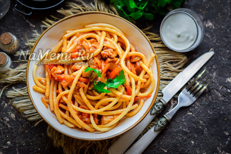🍝Лапшу удон отварить отдельно, согласно инструкции. Добавить в сковороду, перемешать все и прогреть несколько минут