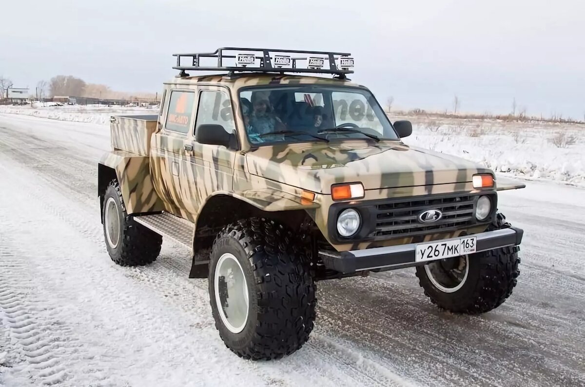 Дочернее предприятие «АвтоВАЗа», тольяттинская компания «ВИС-Авто», представило новую модификацию внедорожника Lada 4x4. Автомобиль превратили в пикап с большими шинами сверхнизкого давления. В основу новинки легла модель ВИС-23461 — пикап с двойной кабиной. Друг от друга они отличаются колесами, расширенной колеей и увеличенным дорожным просветом. Фотографиями автомобиля поделилось сообщество Lada 4x4. Помимо шин низкого давления, болотоход получил бортовые редукторы. Мосты и блокировку межосевого дифференциала взяли от Lada 4x4 Bronto. Чтобы установить большие колеса, инженерам пришлось подрезать крылья. Салон новинки точно такой же, как у обновленной Lada 4x4. Здесь установлена новая приборная панель и климатическая система, модуль «ЭРА-ГЛОНАСС» и более комфортные сиденья. В моторном отсеке разместился 1,7-литровый агрегат с отдачей 83 лошадиные силы. В паре с ним работает пятиступенчатая механическая коробка передач. Как заявляет производитель, пикап может передвигаться по легкой т