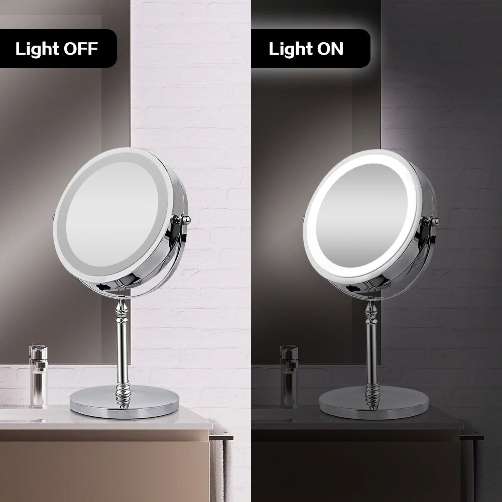 Зеркало для макияжа со светодиодной подсветкой, вращающееся на 360 градусов.