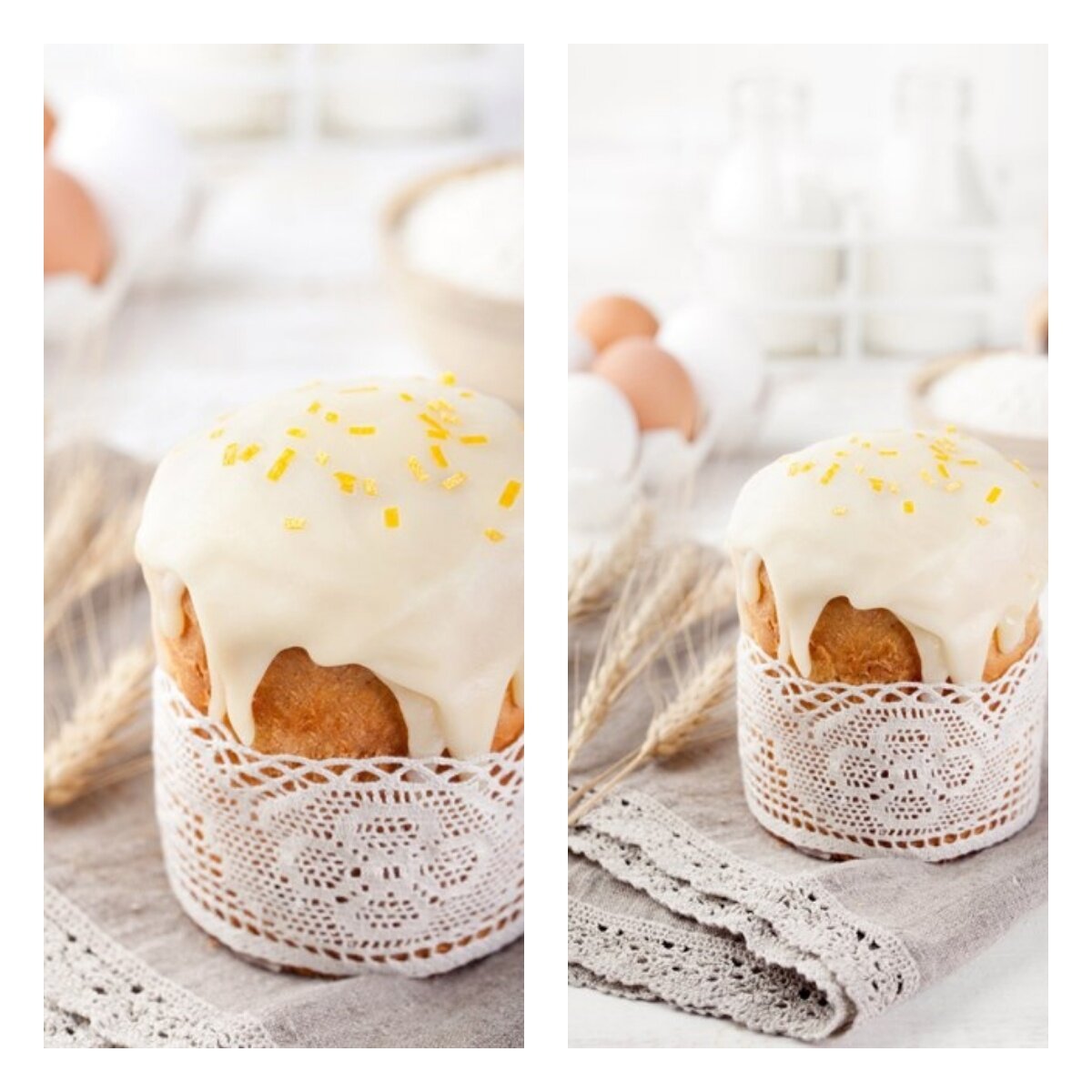 Кулич творожный с лимонной глазурью.