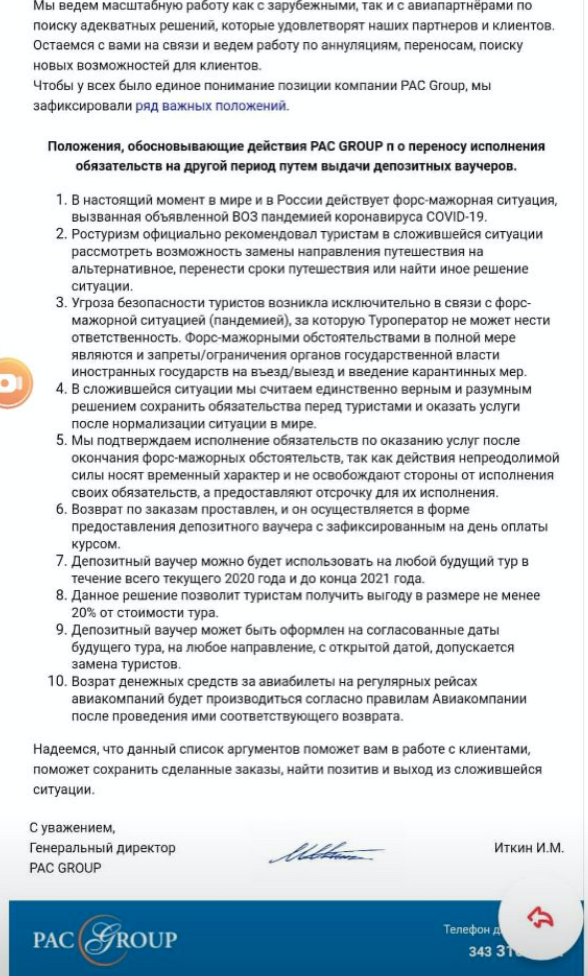 У меня забронирован тур в Турцию с вылетом 23 мая. Забронирован он был еще в прошлом году по акции "Раннее бронирование", о чем я ни в коем случае не жалею, так как даже сейчас, в условиях пандемии, мой тур стоит на 30 тысяч рублей дороже! Турция - практически единственное туристическое направление, которое до сих пор не закрыло свои границы и туда до сих пор можно купить тур на ближайшие даты вылета. Но Ростуризм уже рекомендовал как можно быстрее покинуть страну, а это значит, что закрытие неминуемо и остались считанные часы до закрытия. До вылета по моему туру еще чуть больше 2-х месяцев. По идее, за это время все вполне может нормализоваться в мире и люди снова полетят отдыхать. Но верится в это все меньше и меньше, честно говоря ... Фифти фифти ... В условиях нынешней ситуации туроператоры были вынуждены приостановить выплаты по всем аннулированным ранее турам. Эта мера предпринята, чтобы избежать банкротств. Туроператоры ввели депозитную системы. Вы можете аннулировать свой тур,