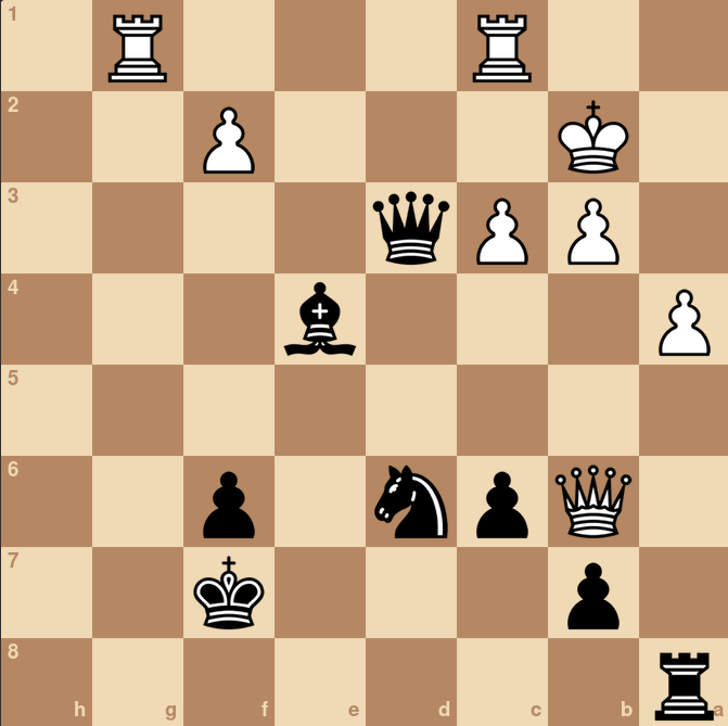 Партия М.Эйве, 5 чемпиона мира по шахматам. Тартаковер - Эйве, Венеция, 1948 год. Как продолжить атаку за чёрных? Далее будут идти картинки подсказки. Попробуйте решить задачу самостоятельно, а потом посмотрите ответы. Это классический пример погони за королём. По пути будут жертвы и вилки. Чёрным удаётся получить окончание ферзь против ладьи.