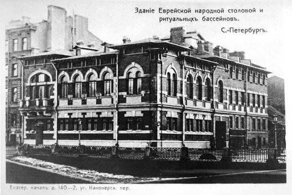 Дом 140 на канале Грибоедова. Чем же он интересен? В документах этого дома от 13 мая 1902 года содержится проект архитектора Б.И.Гиршовича постройки лицевого двухэтажного каменного дома.22 августа 1902 года был утвержден другой проект дома составленный тем же архитектором. Борис Ионович Гершкович является автором многих крупных зданий в Санкт-Петербурге, построенных формах поздней эклектики, модерна и неоклассицизма. Строительство еврейского социального центра было крайне необходимым, так как в 1900 году в нашем городе проживало 20385 евреев. Помощь бедным является для евреев не сентиментальным актом, а требованием религиозного закона. Каждому еврею заповедано помогать неимущим, посещать больных, присутствовать на похоронах, утешать скорбящих по усопшим. Поэтому недалеко от синагоги ( ныне Лермонтовский пр. д. 2) на набережной канала Грибоедова 140 находились еврейские благотворительные учреждения общества пособия бедным ( ОПБ ) евреям, дешевая столовая и бассейн для ритуальных омо