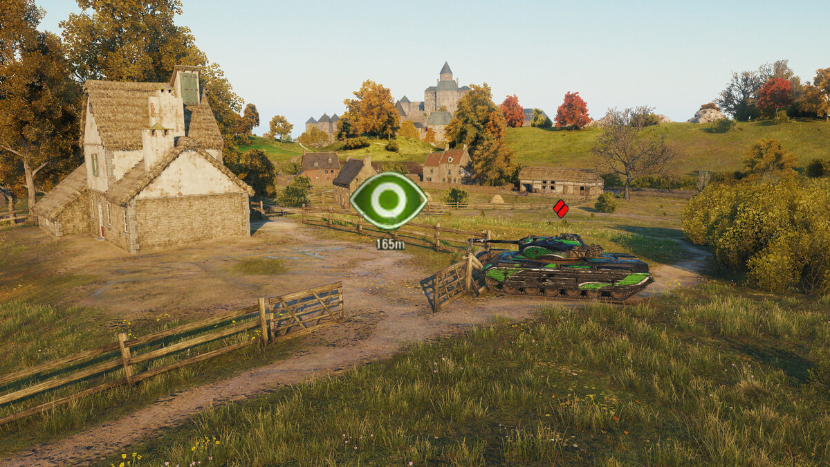 Но подъехав на базу, я решил еще раз проверить свою теорию. Встал в кусты и там внутри кустов есть спрятанные заборы (не понятно конечно, для чего они, ну да ладно), гусеницей сломал один из этих заборов и угадайте что? Конечно же, мне прилетел выстрел точно в это место, хорошо что я успел отъехать!