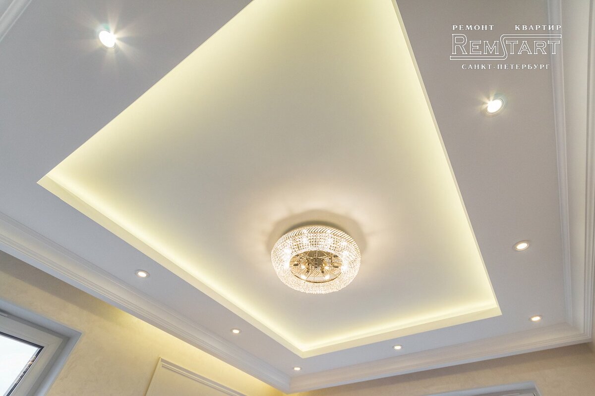Выбор способа отделки и дизайна зависит от многих факторов. Так, для помещений небольшой высоты или мансардных, многоярусные подвесные конструкции едва ли уместны, более удачным вариантом будет натяжное полотно или обычная покраска (побелка). Высокие потолки “напрашиваются” на оформление с большим перепадом по уровню. Кроме того, интересный эффект может дать использование в отделке зеркал.