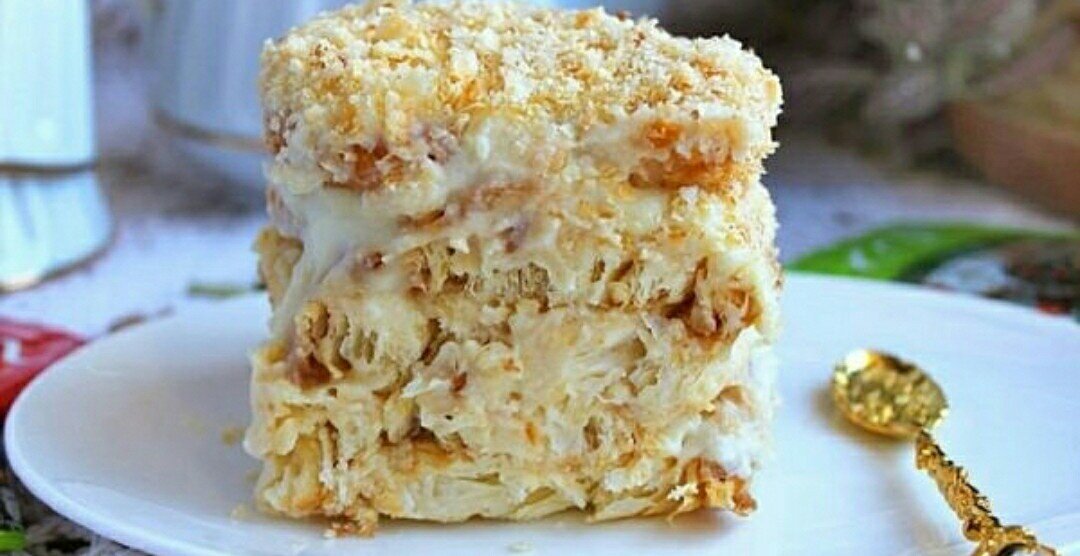 Наша семья очень любит торты, особенно домашние. Но на их приготовление уходит уйма времени. На этот торт у меня ушло ровно 20 минут. Получается таким же вкусным и сытным! Ингредиенты: Слоёное печенье "Ушки" - 1 кг. Молоко - 1 л. Яйца - 4 шт Масло сливочное - 150 г. Сахар - ½ стакана Мука - 6 ст.ложек. Ванильный сахар - щепотка. Готовим заварной крем: Яйца, сахар и муку поместить в одну ёмкость, влить молоко и поставить на огонь. Варить на медленном огне постоянно помешивая. Варить крем до полного загустения. После этого снять с огня, остудить и добавить размягченнное сливочное масло. Хорошенько перемешать. Крем готов! Готовим торт. Дно круглой формы смазываем сливочным маслом и укладываем первый слой "Ушек". Обильно смазываем кремом. Повторяем: слой Ушек, слой крема. И так, пока не закончатся ингредиенты. Кстати, ушки можно прямо макать в крем и укладывать. Но традиционный вариант приготовления мне нравится больше. Последний слой смазываем обильно кремом. Можно украсить по своему