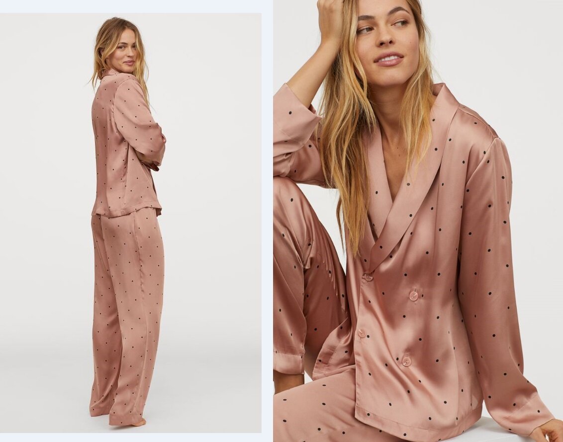 Дома мы проводим достаточно много времени, особенно сейчас, из-за эпидемиалогической обстановки. Но выбору домашней одежда часто не уделяем такого же внимания, как выбору одежды на выход. Предлагаю исправить это досадное недоразумение и выбрать себе что-нибудь симпатичное из актуальных коллекций домашней одежды. Для примера возьмём магазин H&M, он есть во многих городах, так что померить понравившуюся модель не составит труда. Я разделю свой обзор на три категории домашней одежды: Атласный стильный домашний костюм тёмно-розового цвета в горошек: Хлопковый светло-серый домашний костюм: Домашний костюм леггинсы + кофта с длинным рукавом: Домашний костюм меланж: Домашний костюм пижамного стиля: Домашняя толстовка и штаны для прохладных дней: Костюм в мелкий цветочек с маечкой, украшенной кружевом (на сайте представлен в разных цветовых вариациях): Ещё один вариант предыдущего комплекта, в другой расцветке: Хлопковый домашний костюм с кружевной отделкой: Домашний костюм нежно-розового цв