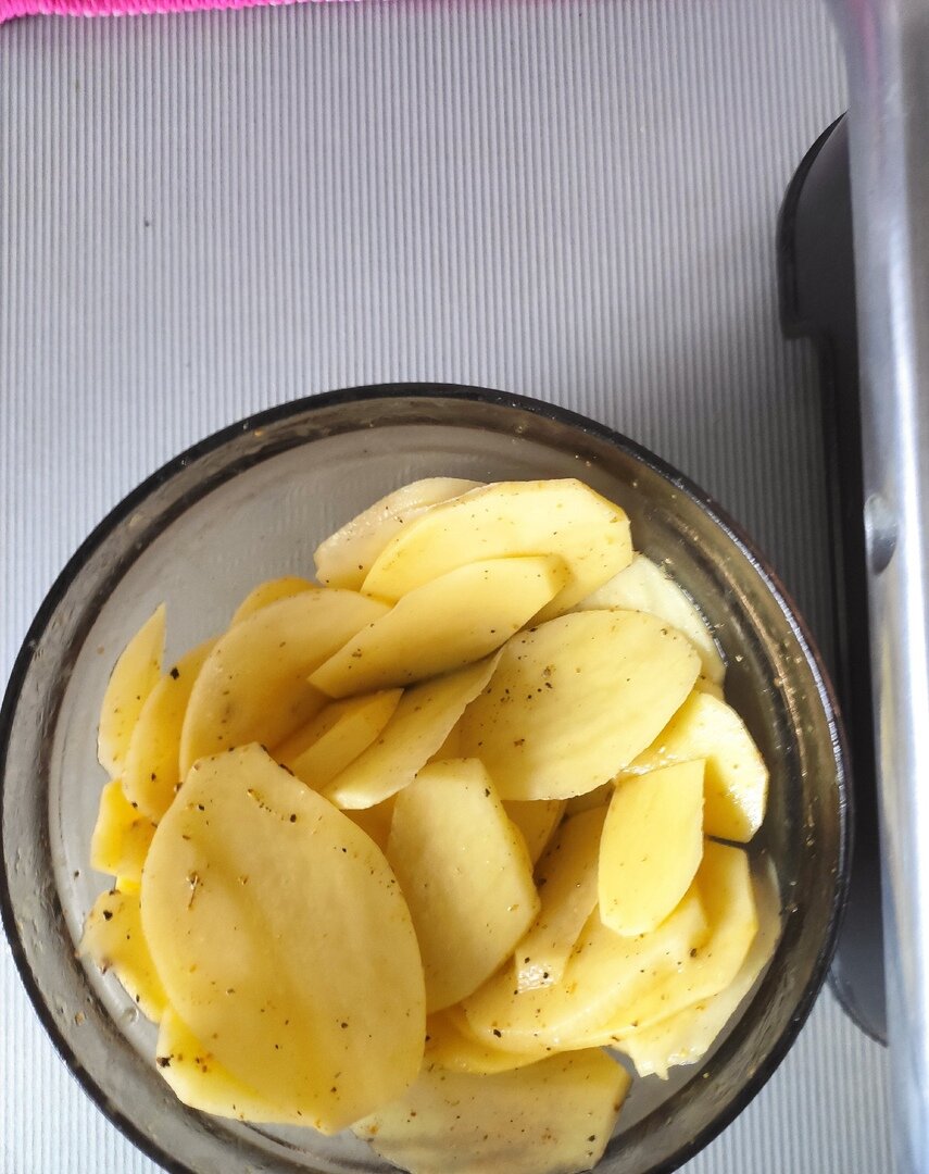 Домашние чипсы полезней покупных ведь в них нету химических добавок, так же вкус чипсов приготовленных в домашних условиях напрямую зависит от ваших предпочтений что не может не являться плюсом, еще одним плюсом являются затраты на приготовление таких чипсов, так как они совсем минимальные, вернее их почти нет. Самое сложное в приготовлении домашних чипсов это чистка картошки (наверняка у вас не будет с этим проблем) Приготовление: Для начала нам понадобится хорошо отмыть картофель от загрязнений, после чего отчистить его от кожуры и можно приступать к нарезке картошки (имейте в виду чем тоньше вы нарежете картошку, тем хрустящей получатся чипсы) Для того что бы наши чипсы стали обладать каким либо вкусом необходимо использовать приправу, приправа может быть абсолютно любой, ее может заменить даже соль. Нарезанную картошку посыпаем приправой и добавляем растительного масла (количество масла зависит от ваших пропорций) После всего проделанного перемешиваем картошку и отправляем на гри