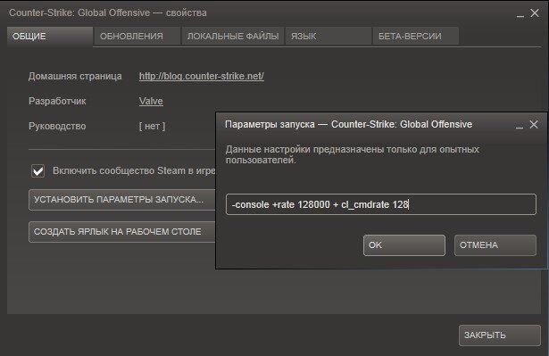+cl_updaterate 128 — рекомендуемое значение сетевого параметра;