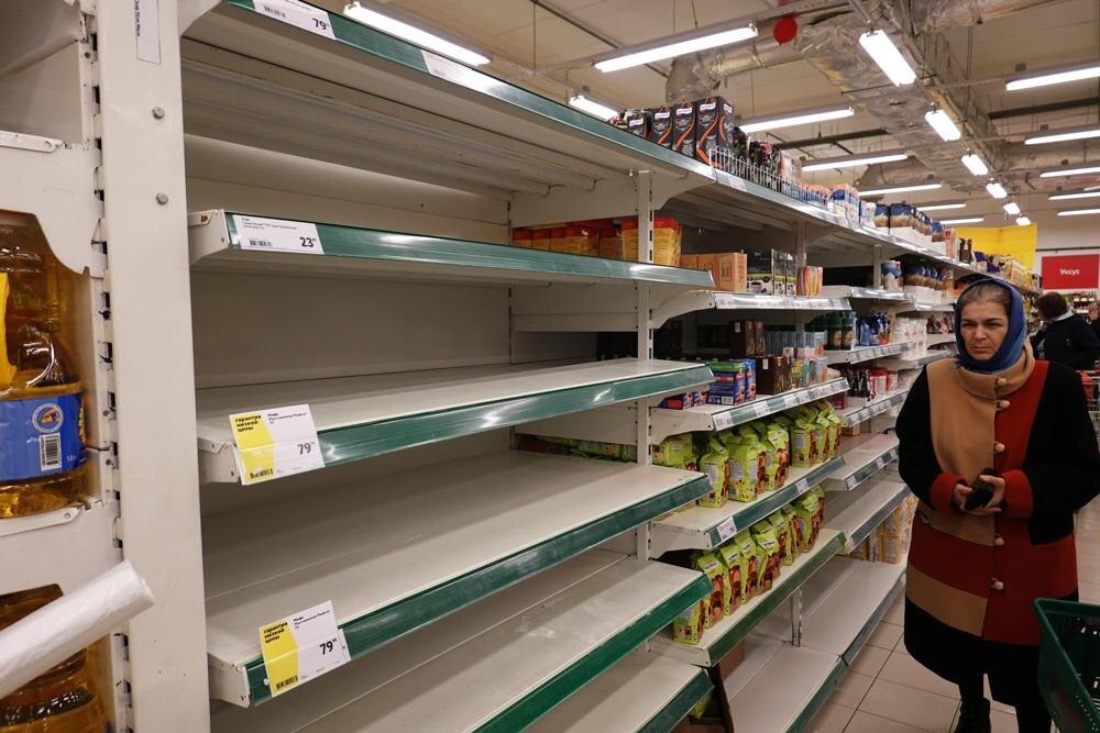В Москве полки с крупами стоят пустые: в панике народ все сусеки выгреб. В карусели можно увидеть фотки московского апокалипсиса, творящегося в магазинах. Друзья из регионов уже посылки мне собирают, чтобы с голоду не умерла.