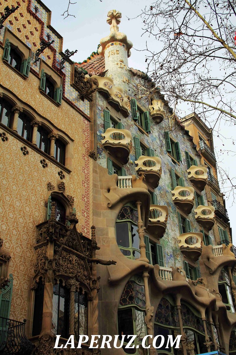 Первое имя, ассоциирующееся с Барселоной — это, конечно, Антонио Гауди. Архитектор известен не только церковью Саграда Фамилия, которая строится уже больше ста лет. В городе сохранилось несколько модерновых зданий его авторства, среди которых справедливо выделяется дом Бальо (Casa Batlló). Заказчиком строительства стал текстильный магнат Жозеп Бальо-и-Касановас. Результат его не удовлетворил, и через 27 лет доходный дом пришлось перестраивать Антонио Гауди. Он сохранил исходную структуру здания, но добавил два новых фасада: на пассаж де Грасия и внутрь квартала. Именно причудливая уличная сторона привлекает к дому всё новых и новых поклонников. Она даже служит фоном для снимков, которые делают служащие музея, но эти фотографии стоят 12 евро — оно вам надо? В Дом Бальо, как и в Саграду Фамилию, входной билет мы покупали на официальном сайте музея — так дешевле и удобнее. Сохранили его на телефоне и показали на входе. Там же нам бесплатно выдали смарт-гид на русском языке с элементами ин