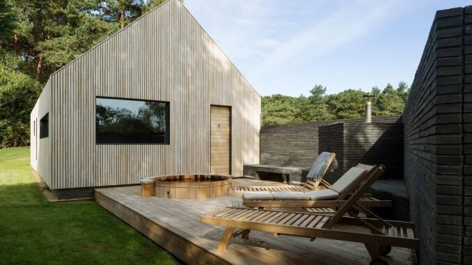 Есть дома для отдыха выходного дня (дачи), есть дома для постоянного проживания, а есть дома для вечеринок! 🎉 У постройки такого дома, естественно, есть свои особенности. Если он предназначен, в основном, для вечеринок и увеселительных мероприятий, то большие окна уже не подойдут, а нужны маленькие щелевидные, которые редко располагаются вокруг конструкции. Тем самым пространство получается мрачным, обеспечивая более тактильную внутреннюю отделку, которая может противостоять напряжению вечеринок. ⠀ Для интерьера общая зона двойной высоты расположена на одной стороне пространства, оборудованная баром и игровой площадкой. ⠀ Имеются две спальни, которые находятся в противоположной стороне здания, чтобы звуки практически не доходили до тех, кто решил отдохнуть. ⠀ В доме есть терраса. Она оборудована гидромассажной ванной, где можно расслабиться и насладиться окружающей обстановкой. ⠀ Есть очень интересная зона со встроенной кирпичной печкой для пиццы и скамейкой, которая служит нишей дл