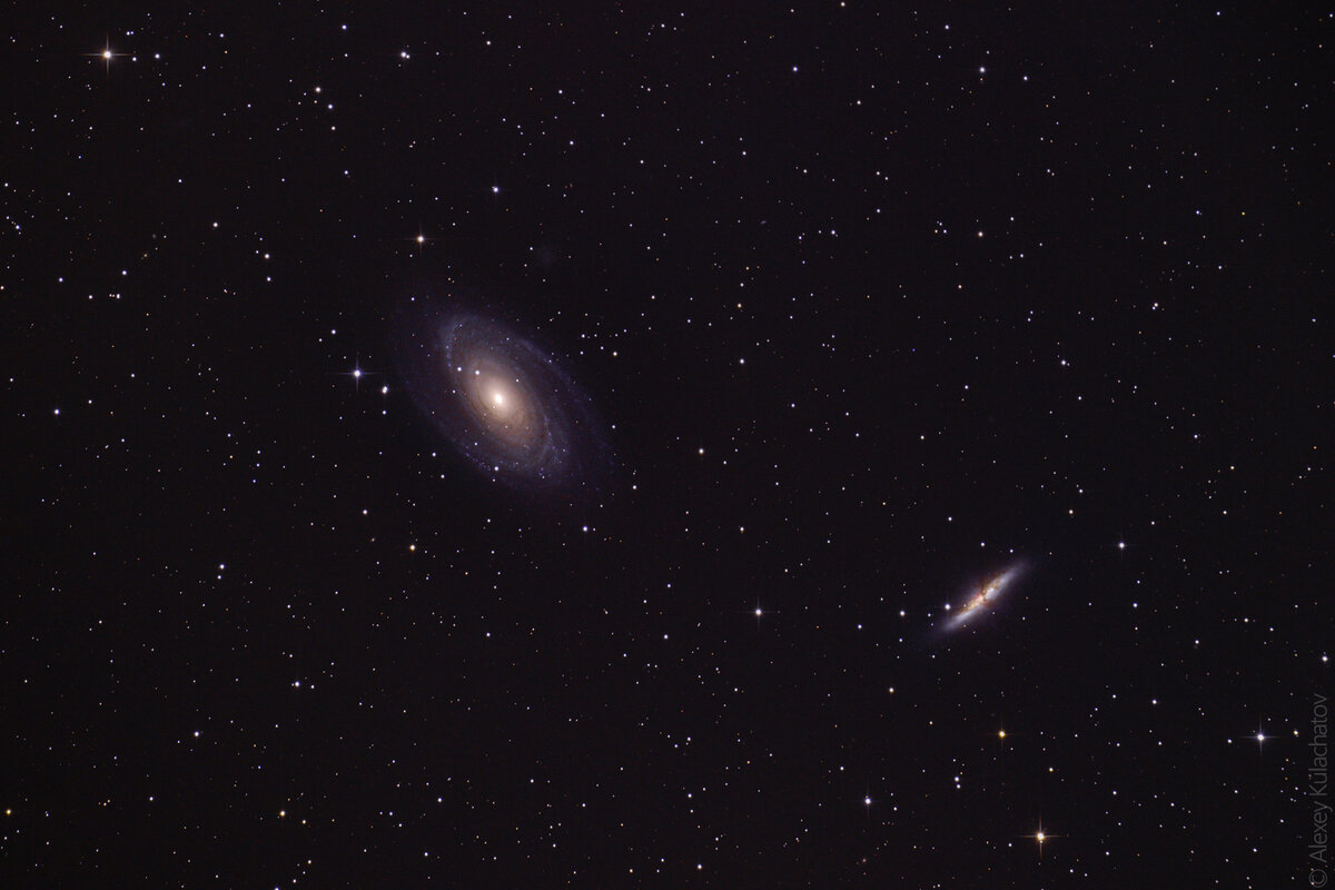 На прошлой неделе выдалась ясная ночь. Это такая редкость в этом сезоне. Со времён прошлых выездов кое-что поменялось. Раньше я выезжал на Делимобиле, но у него есть ограничение в пределах Московской области. А вот у #яндексдрайв такого ограничения нет. А чтобы победить засветку нужно как минимум выехать из московской области. Фоточка пары моих любимых галактик М81 и М82. М81 (слева) спиральная галактика. А с М82 ситуация хитрее. Даже за мою жизнь понимание её менялось. Я ещё помню книжки, где под черно-белой мутной фоткой из четырех серых пятен, было написано что это неправильная галактика, которая выглядит как будто взорвалась. Потом я помню уже цветные мутные фотки где говорилось, что это наоборот результат столкновения галактик. Теперь же вообще её относят к спиральным галактикам с перемычкой, просто в центре активная область звездообразования, поэтому она так странно выглядит. Вообще все в ту ночь выезжали пофоткать комету года: C/2019 Y4. Правда кометой года она ещё не стала. И