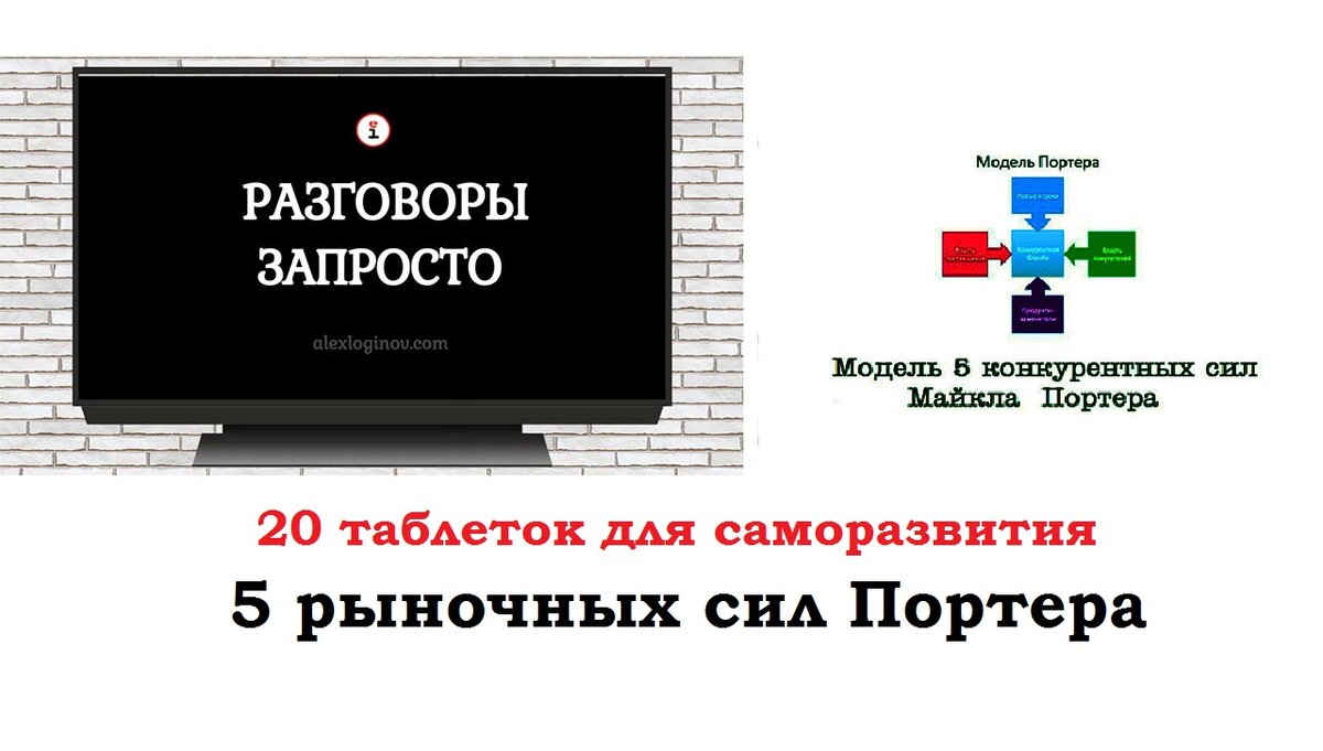 Майкл Юджи́н По́ртер - профессор кафедры делового администрирования Гарвардской школы бизнеса в 1979 году опубликовал метод для анализа конкуренции и выработки стратегии бизнеса. Простая и понятная модель уже 30 лет широко используется в менеджменте. Несколько лет назад бизнес-тренер Рич Кристиансен - автор популярной книги "Принцип зигзага" предложил оригинальную трактовку метода 5 сил Портера. Смотрите короткий ролик о "классическом" использовании метода 5 рыночных сил и его модификации. 5 рыночных сил Портера. P.S. К сожалению, бестселлер Рича Кристиансена "Принцип зигзаза" на русский язык не переведен. С содержанием книги можно познакомиться только по нескольким постам на моем блоге, опубликованным в разные годы. Рекомендую. Зигзагами к цели! О Принципе Зигзага, о Барьерах и о Конкуренции Принцип Зигзага для рыбака-копирайтера Рыба-Кит и Принцип Зигзага . Подписывайтесь на мой канал!