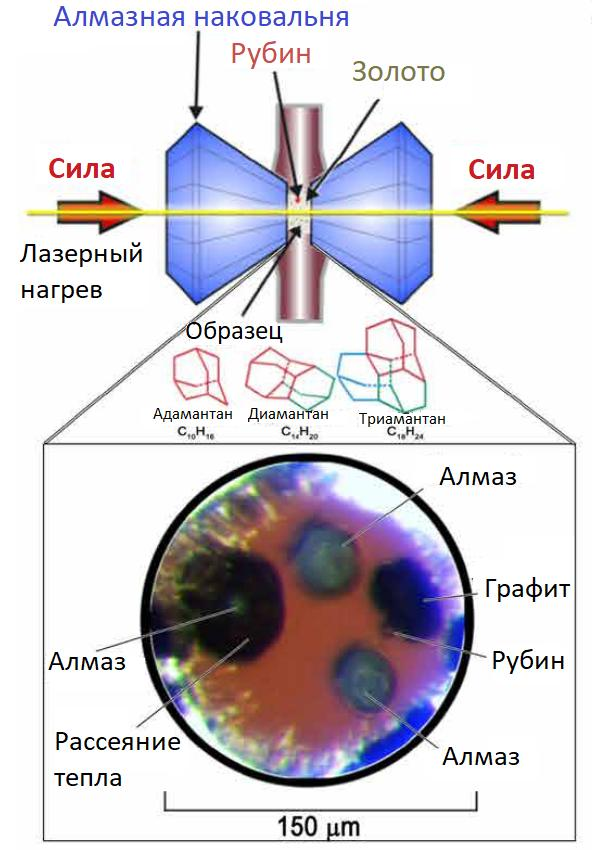 Для чего нужны алмазы? Казалось бы, ответ понятен – для того, чтобы депутатам и чиновникам было что дарить жёнам и любовницам на ДР или 8 марта, но у алмазов есть и более унылые применения. Чрезвычайная твердость, оптическая прозрачность, химическая стабильность, высокая теплопроводность делают алмазы ценным материалом для медицины, промышленности, технологий квантовых вычислений и многих других практических приложений. Природные алмазы кристаллизуются из углерода в сотнях километров под поверхностью Земли, где температура достигает тысяч градусов Цельсия. Большинство природных алмазов, выбрались на поверхность в результате извержений вулканов, прихвативших древние минералы из глубин Земли миллионы лет назад. Однако ученые научились синтезировать алмазы из углерода уже более 60 лет, но для таких превращений требуется большое количество энергии, время или добавление катализатора – часто металла – который снижает качество конечного продукта. «А вот если бы вещество превращалось в чисты