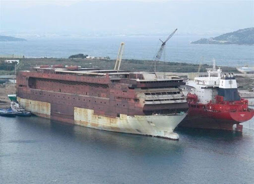 Это ржавое, брошенное судно качающиеся на волнах вот уже почти 40 лет, когда-то должно было рассекать водную гладь провозя на борту тысячи восхищённых туристов. Увы для Regent Sky, это так и осталось красивой мечтой. По проекту шведской компании Stena Line должно было быть построено 4 однотипных судна (круизных парома) : Stena Baltica, Stena Germanica, Stena Scandinavica и Stena Polonica. Постройку Regent Sky или тогда ещё Stena Baltica начали в 1985 году, но возникли проблемы с верфью и строительство приостановили. Судно так и стояло недостроенным в Гданьске до 1989 года, пока его не выкупил его не выкупили Regency Cruises, после чего судно и получило название Regent Sky и его отправили в Грецию, чтобы достроить его там. Новый хозяин груды металла задумал сделать из неё конфетку. Он хотел удлинить судно с его изначальных 175 метров до 228 метров и сделать его океанским лайнером. Но строительство шло туго, а в 1995 году его компания обанкротилась и строительство снова встало. В 1999