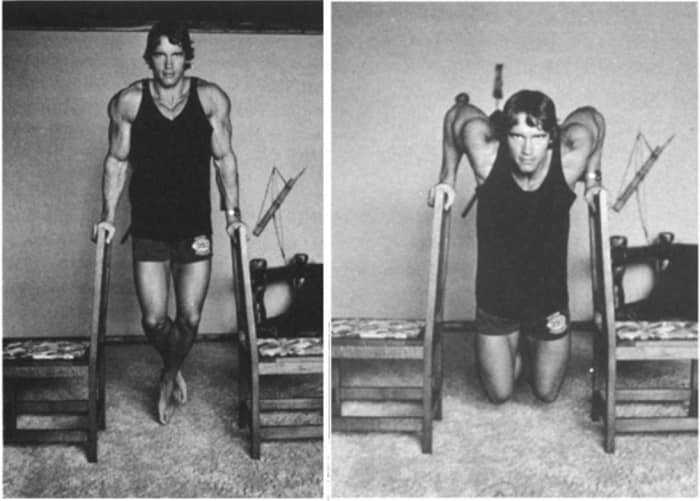 Отжимания со стульями Отжимания Подтягивания на стульях Сит-ап Подъем ног лежа Повороты корпуса в наклоне Приседания Упражнение на икры ног Подтягивания Источник: Xlink.SU