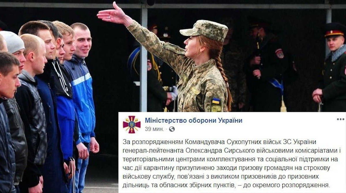 Согласно распоряжению командующего Сухопутных войск ВСУ Александра Сикорского военкоматы приостанавливают на время карантина призыв граждан на срочную военную службу.