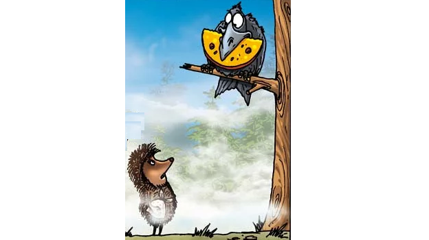 Сыр выпал, ежи подняли его и ушли. На следующее утро они опять решили выпить, и снова у них не было закуски. Они снова пошли к вороне. Один ежик спрашивает ворону: