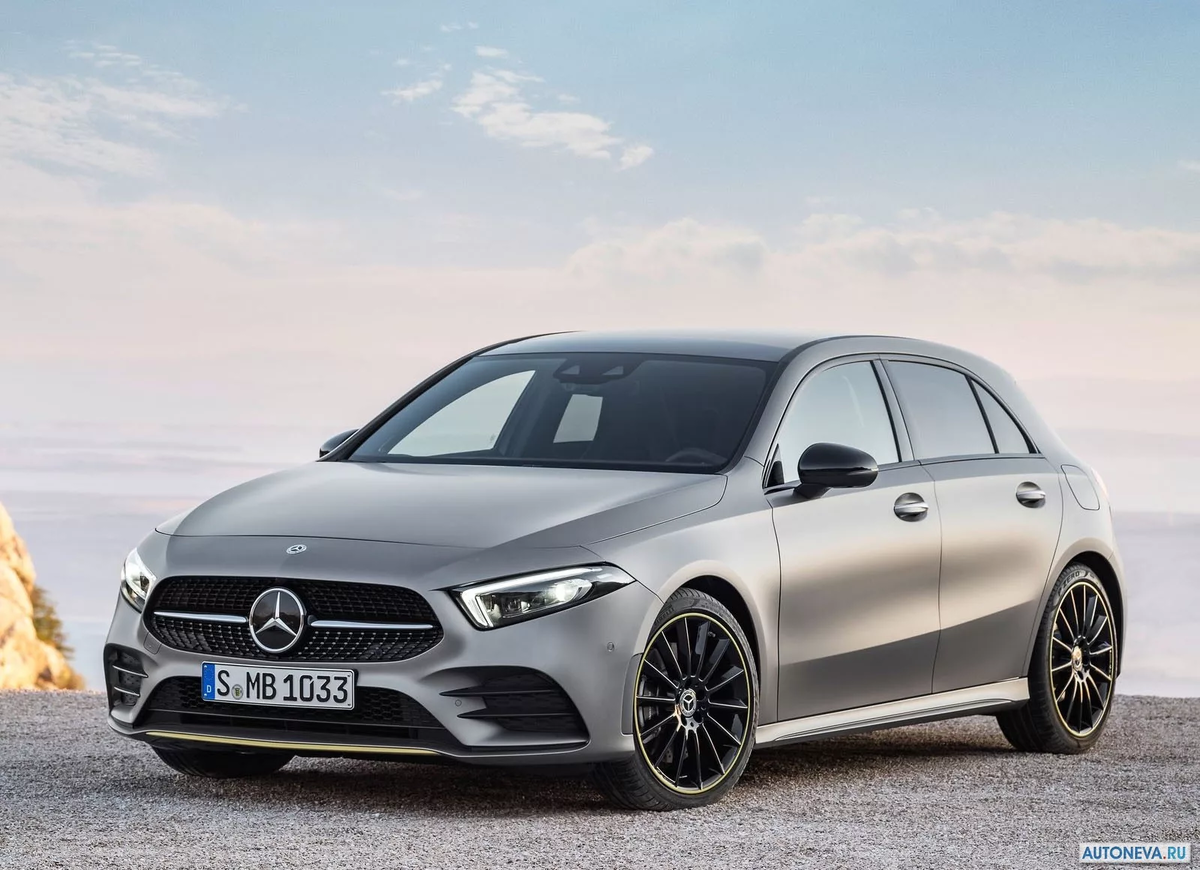 Естественно, самой интересной частью нового Mercedes A-Class 2019 является передний бампер. Морда занимает тут примерно треть всей длины автомобиля. Начинается ее отделка с плоской крышка капота, которая располагается под небольшим наклоном к дороге. Рельеф у нее есть только по бокам и выражается небольшими углублениями. По центру бампера размещается фирменная огромная решетка, прикрывающая радиатор, которая имеет овальную форму.