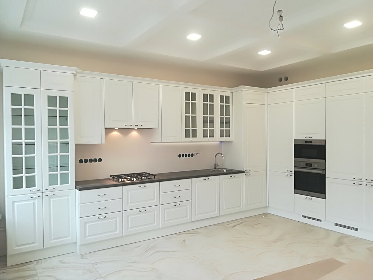 Ваша идеальная кухня ! Какая она ? Предлагаю Вам серию фотографий установленный кухонь. По каждому образцу в комментариях оставляйте Ваши вопросы и пожелания !!! Классика всегда в тренде !!! Смотрится дорого ! Большинство образцов собраны в частном секторе...Вообщем деньги у людей есть ))) Образец 1. Декор карниз,стеклянные витрины да еще сам размер кухни !!! Метров 30 ! Цвет кухни белый - я его называю раскрась сам ))). Техника NEF. В коттедже газ поэтому ставим газовую варочную поверхность. Под бойлер с газ.подключением выделен отдельный пенал ( Он справа от столешницы ). Два пенала справа - это холодильники. Образец 2. Модель кухни такая же...Цвет кремовый. Столешница и стеновая панель ИК ( искусственный камень ). Цвет ОНИКС ( с разводами ). Отдельный элемент интерьера - полочки под специи - оригинально,да ?Размер кухни достаточно большой. Слева нижние секции - встраиваемая техника - посудомойка и стиралка ! Может смотрится и мрачновато....но тут и освещение было - одна лампочка "