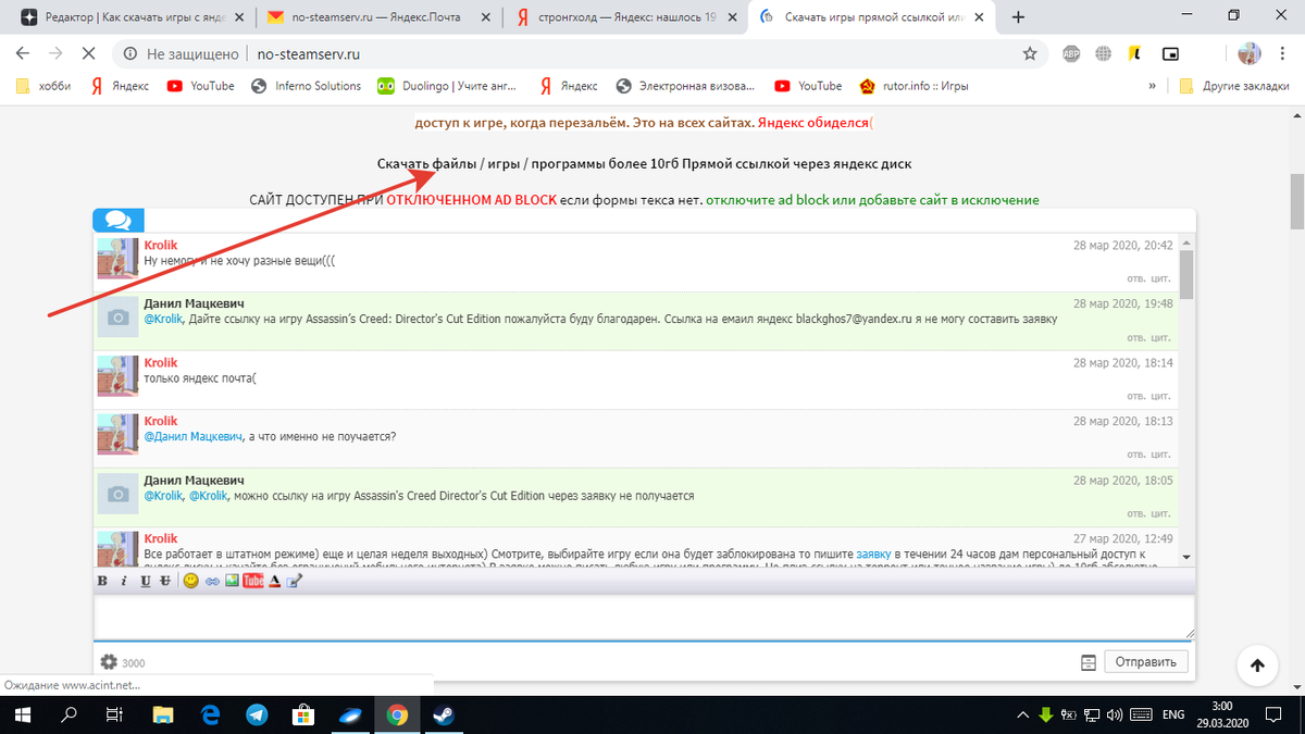 Недавно был в больнице и был доступен только мобильный интернет. Чем заняться не знал и решил скачать Stronghold 1. Тут проблема, даже при условии что у меня 20 гб мобильного трафика, оператор просто ограничивает доступ к скачиванию до 50кб в секунду а это не то что долго. Просто если что то пойдет не так все сбивается( приходится качать заного. Трафик на яндекс диск вроде не режется но где скачать не знал( В общем выписался из больнице и как только оказался дома. Сразу сделал копии всех *важных игр* к себе на диск. Ну и подумал о Вас) кто читает эту статью скорее всего с этим столкнулся. Организовал игровой портал, там можно оставить заявку для любой игры если нужной нет в каталоге и я обязательно помогу Вам в трудную минуту))) Суть очень проста, заходите на сайт no-stemserv.ru в шапке сайта ссылка, кликайте Далее откроется окно с формой обратной связи для срочно помощи) Просто заполните 2 пункта, Ваша яндекс почта. Обязательно яндекс т.к Вам нужен яндекс диск) Ну и нужная игра. В