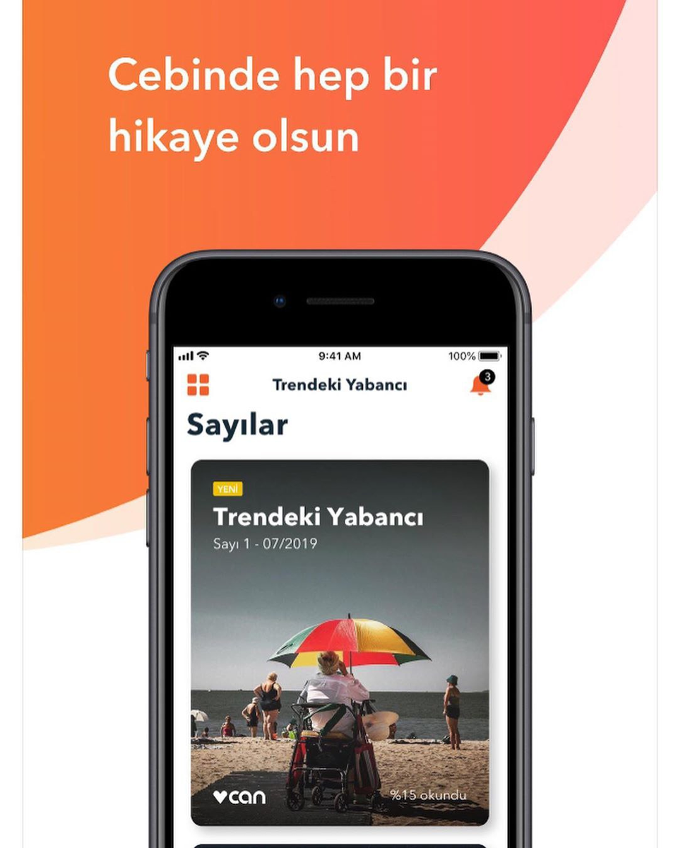 В сентябре 2019 года известное турецкое издательство Can Yayınları выпустило собственное приложение для мобильных устройств TrendekiYabancı (Чужак в поезде). Приложение представляет собой ежемесячный журнал рассказов. Каждый месяц вы можете читать 20 коротких и не очень рассказов турецких и иностранных авторов. Понравившиеся отрывки можно даже подчеркнуть и поделиться ими в соцсетях. Подписка в настоящее время бесплатная. Приложение доступно и для IOS, и для Android. При наличии подписки можно даже не быть подключённым к интернету и читать оффлайн. Как вам идея? Короткие рассказы ведь самое то для поездок в транспорте на работу и обратно.