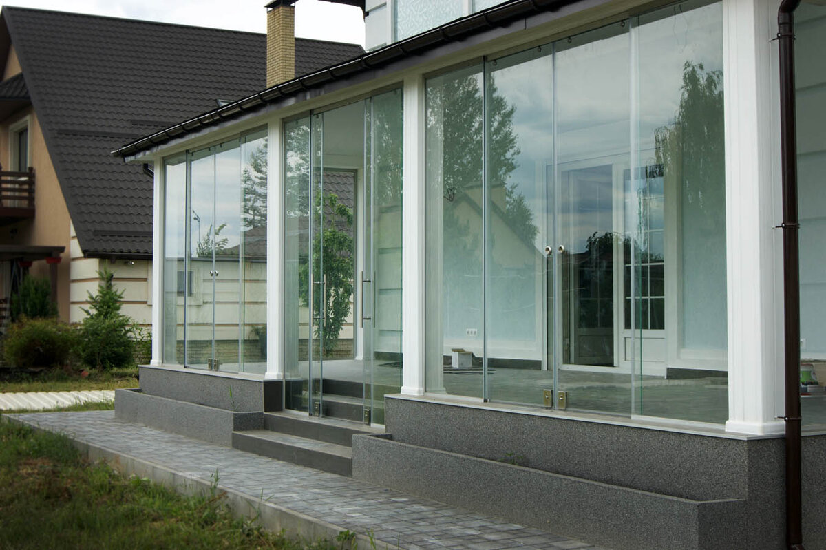 Для зонирования и декорирования различных строений приватного и промышленного назначения стали широко использовать стеклянные конструкции. Они универсальны, эффективно выполняют различные функции и украшают здание. Отличные технические характеристики, дополненные широкими стилистическими возможностями, вывели стекло в топ современных строительных материалов. Сфера применения Замечательные образцы остекления веранды Eraglass представлены на сайте компании — они легки и буквально парят в воздухе. При этом обеспечивают звукоизоляцию, сберегают тепло и надежно защищают от насекомых и любых капризов непогоды. Если помещение используется только во время летнего сезона, то есть вариант холодного, но очень визуально эффектного безрамного остекления — это элитное и недешевое направление архитектуры. В зависимости от исходной конструкции строения, его назначения и желания владельца остекление делают частичным или панорамным. Оно обеспечивает максимум комфорта при этом не нарушается единение с пр