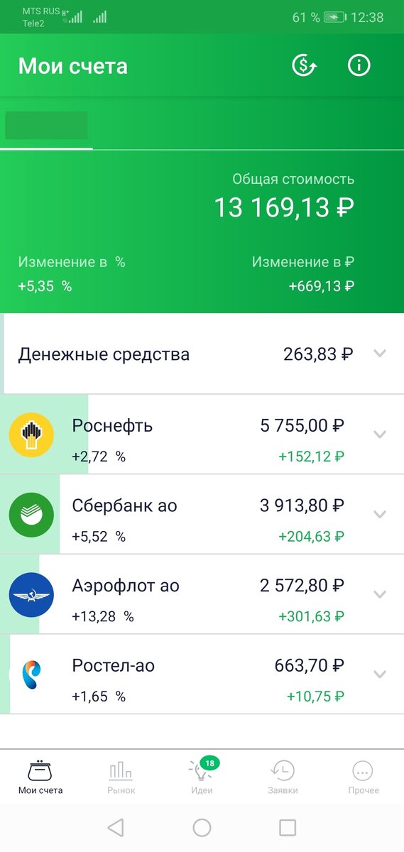 В течение недели страна начала принимать меры по восстановления экономики по этому акции не много подросли. Также успел купить 40 акции купил бы больше, но решил для себя откладывать на это дело по 10-20% от аванса - зп аэрофлота по очень вкусной цене в 56,78 и до конца недели они выросли до 64,32. И в принципе я очень доволен этой неделей за все время я ушел в плюс на 5,35% не каждый банк дает такой процент за год, но и риски здесь конечно на много выше. Начало истории