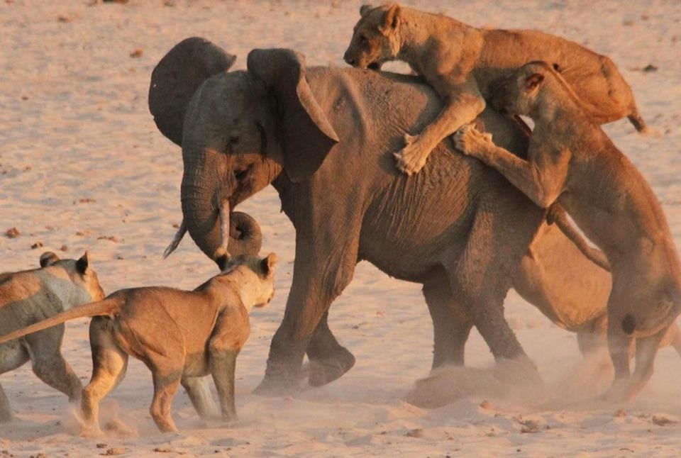 Слон – огромное млекопитающее, которое бродит по бескрайним саваннам Африки и тропическим лесам Юго-Восточной Азии. Название этого животного давно стало нарицательным. Слоном называют кого-то очень большого и неповоротливого. Считается, что единственным врагом гиганта является только человек. Но в дикой природе есть хищники, которые время от времени лакомятся слонятиной… Лев «Царь зверей» ест добычу почти любого размера. Будь-то тщедушная антилопа или даже жираф. Своему успеху они обязан не сколько большим клыкам и острым когтям, а умению охотиться сообща. Целый прайд почти не оставит шансов взрослому буйволу или зебре. Случается, что на обед большим кошкам попадают слоны. Одолеть взрослую особь прайду не по плечу. А вот слонят и молодых слонов-подростков они съесть вполне способны. Однако слоны стадные животные, и они очень агрессивно защищают своих детёнышей. Поэтому хищникам надо сперва отбить свою жертву от стада или она сама должна отбиться. Лишь после этого у львов появится ша