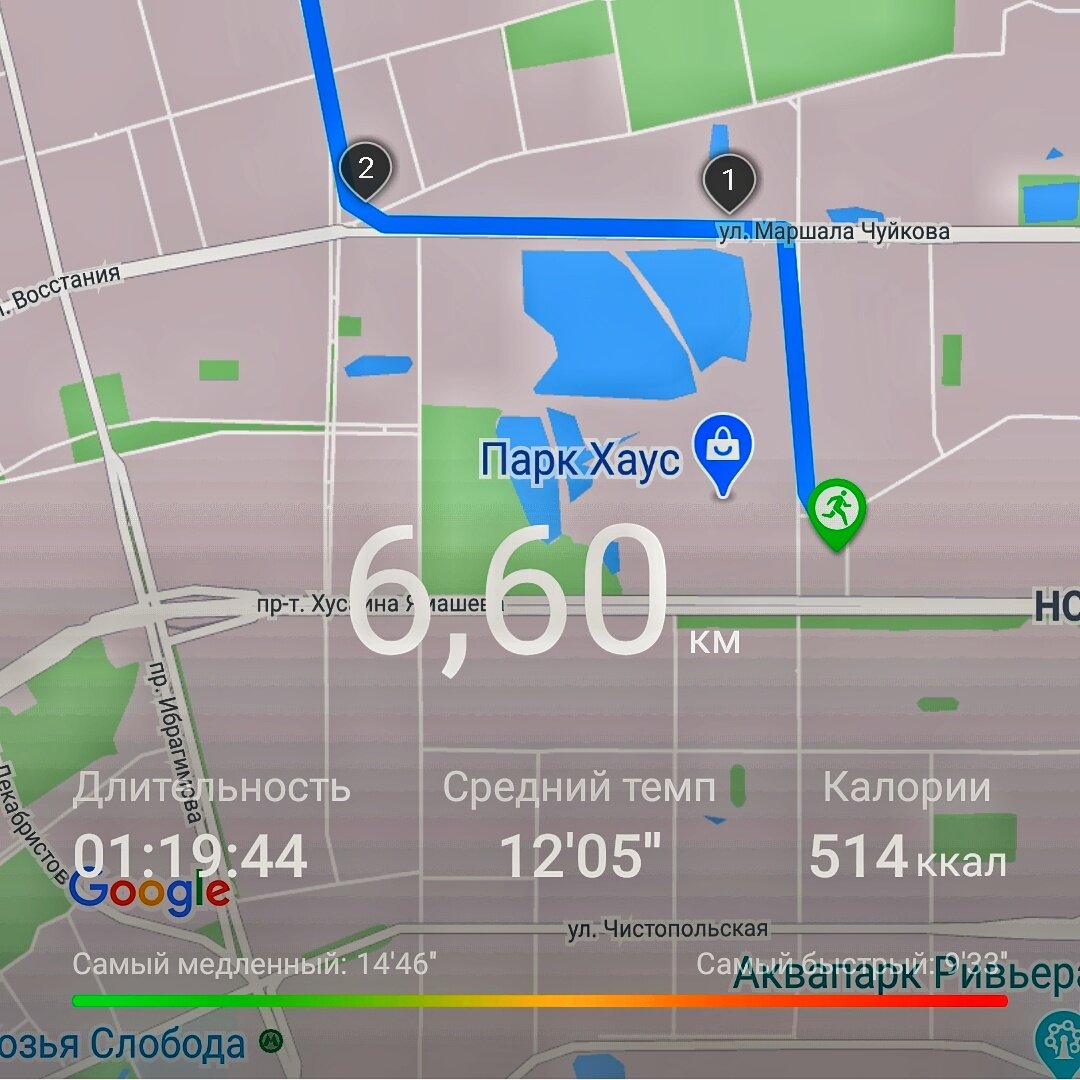 Но при хорошей погоде. Время которое потратил на почти 7 километров, 1 час и 19 минут. Это с заходом в два магазина по пути.