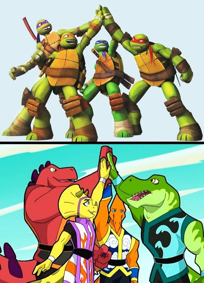 Некоторые мультфильмы становятся просто культовыми, и их знают не только дети, но и взрослые по всему земному шару. Однако видение сюжета и персонажей в разных странах могут отличаться. Отсюда появляются смелые и порой странные пародии. 1. Черепашки-ниндзя / Кунг-фу Дино Отряд 2. Гравити Фолз / Гравипадово 3. Скуби-Ду / Губер и охотники за привидениями 4. Южный парк / Блок 13 5. Время приключений / Легенда о Лаки Пае 6. Губка Боб / Кокос Фрэд