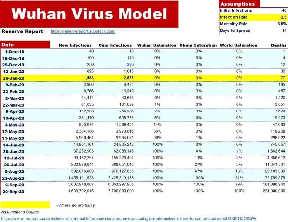 22 го января в Китае было 440 официально заражённых. Прошло два месяца... Сегодня, 22 го марта в мире 315 992 человека заражены. За последние сутки прирост более чем в 50 000. Насколько это плохие новости? По десятибалльной шкале я бы оценил на 9. Объясню почему: В январе reuters выложили график-прогноз, по которому к сентябрю вирусом может заразиться все население планеты если динамика будет сохраняться. 22-го марта, по этому графику, мы должны были пройти отметку в 100 с небольшим тысяч заражений. Как Вы сейчас знаете, мы опередили график минимум на 200 000. В перспективе это перегрузка систем здравоохранения, а с учётом риска заражения самих мед.работников не за горами и полный крах этих систем в отдельных государствах. В момент когда закончились больничные койки, не хватает медикаментов, оборудования и твои врачи сами нуждаются в оказании медицинской помощи государство может надеяться только на помощь извне. Сейчас гуманитарную помощь начали оказывать Италии. Но, что будет