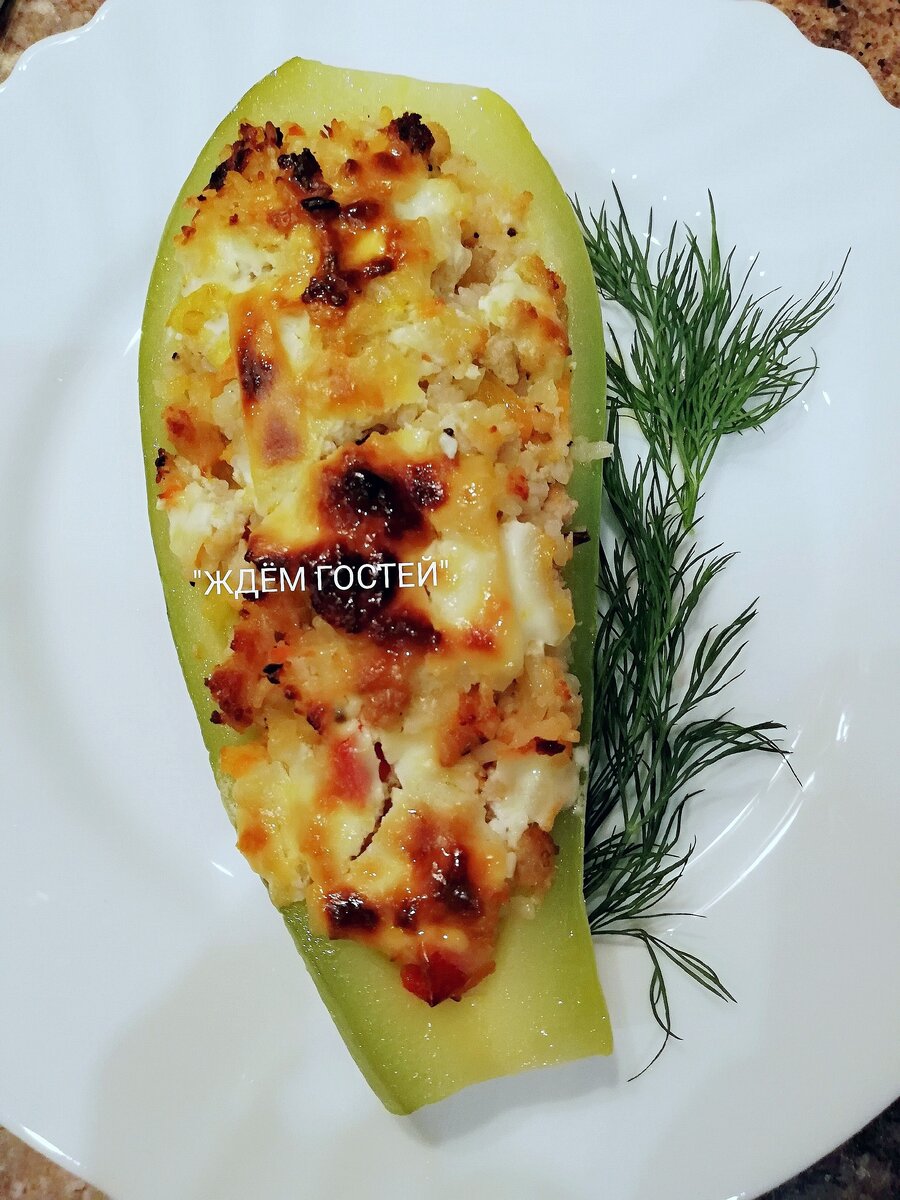 Быстрый, лёгкий и вкусный ужин. Сегодня будем готовить вкусные кабачки в духовке. Необходимо взять молодые кабачки, я буду использовать кабачки которые заморозила летом. Для начинки будем использовать фарш (можно взять любой), рис и овощи. Это блюдо хорошо подойдёт для семейного ужина. Готовится оно легко и из доступных продуктов. Ингридиенты: - Кабачки 1-2 шт. - Фарш 300 гр. - Морковь 1 шт. - Лук репчатый 1 шт. - Рис 100 гр. - Сметана - Соль по вкусу - Перец по вкусу Приготовление: Взять кабачок, помыть, отрезать хвостик и разрезать кабачок на две части. Затем необходимо убрать серединку. Я взяла кабачоки который вырастила и заморозила летом. Форму, в которой будем запекать, смазать растительным маслом и положить наши кабачки. Теперь приготовим начинку. Лук почистить и нарезать, обжарить на растительном масле до мягкости. Затем добавить морковь натертую на крупной тёрке. Затем добавить фарш и ещё немного обжарить. Всё сложить в глубокую миску. Добавить рис, которы