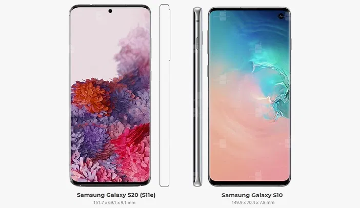 Дисплей станет чуть больше - 6.1 см ( S20 ), 6.4 ( S20+ )