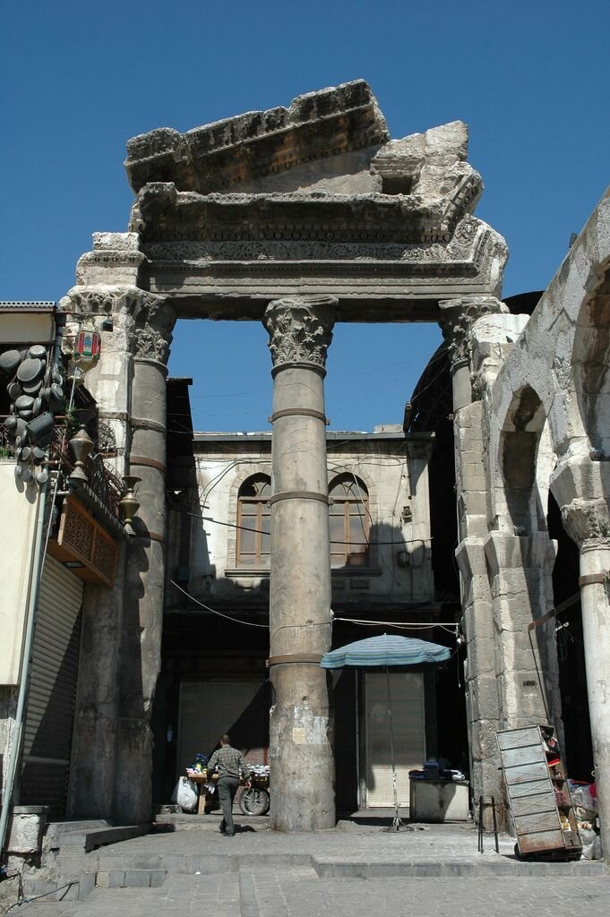 Дамаск - его старая часть, которая является объектом Списка Всемирного наследия ЮНЕСКО - это город средневековый. Там много построек мамлюкской и айюбидской эпохи, но большинство относятся к османскому периоду. Однако, сохранились и напоминания о той поре, когда город был одним из важных центров античного мира. И если греки там никаких напоминаний о себе не оставили, то римских "следов" хоть отбавляй. Несмотря на то, что почти все оно было перестроено.