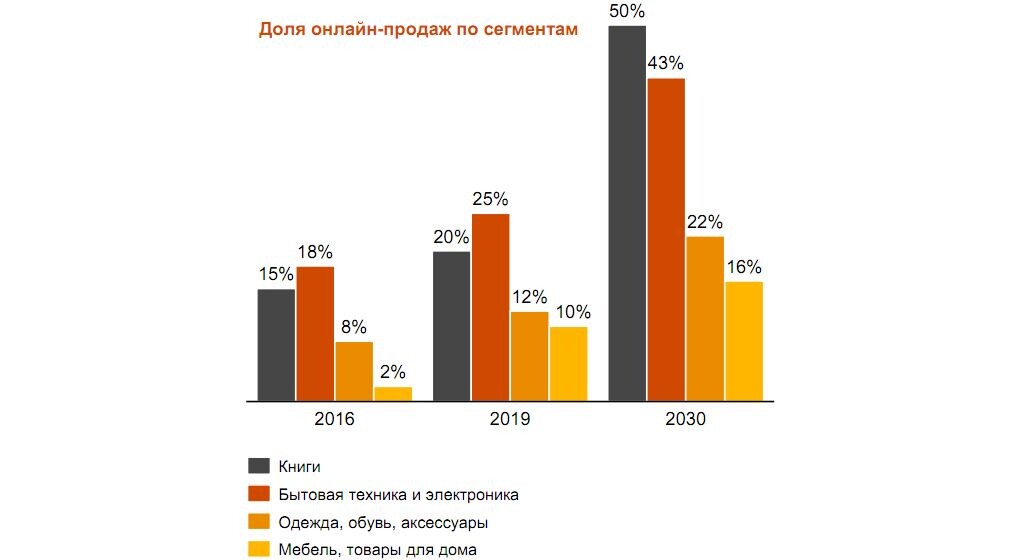 “Через 20 лет ничего не будет. Ни кино, ни театра, ни книг, ни газет – одно сплошное телевидение” - обещалось в древнем фильме. Не сбылось. Есть пророки, что предрекают традиционной рознице скорую кончину, обещая, что скоро будет один сплошной интернет. Хоть и являюсь интернетчиком до мозга костей, но “истина дороже”... Не согласен с ними. И что важнее - не согласны более матерые специалисты. Смотрю сейчас анализ торговой недвижимости России(2020 год) от Pricewaterhouse, с прогнозом на ближайшие 10 лет. Цитирую: В 2019 г. Россия вошла в топ-5 стран с самыми быстрорастущими рынками онлайн-торговли. Доля электронной торговли в Москве в 2019 г. составляла около 6%, в среднем по стране – около 4%. К 2023 г., при сохранении существующих темпов роста и увеличении количества покупателей, использующих онлайн-каналы, этот показатель может составить от 6% до 8,5% от общего оборота розничной торговли в стране, а к 2030 г. превысить 10%.