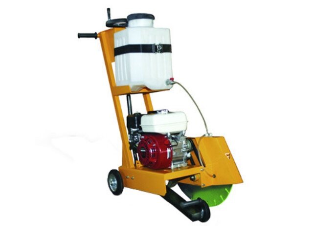 Бензиновый нарезчик швов необходим для автономной работы по разделке бетонных плит,асфальта и прочих поверхностей для устройства температурных швов,демонтажа и прочее. Особенность этого оборудования заключена в наличии бензинового привода в виде двигателя HONDA GX 390 мощьностью 13 л/с. Более слабые двигателя - GX 270,GX 200 недостаточно мощные для этой работы и очень быстро выходят из строя. В этом пособии мы попробуем подробно объяснить и показать как правильно работать бензиновым нарезчиком швов. 1. Установка диска. Выбираем диск в соответствии с Вашими задачами по резке. Это может быть асфальт, бетон,железобетон, камень ... Обязательно обратить внимание на направление вращения (указано на диске стрелкой), и закрепить его на шпинделе шайбой (совместив выступ на шайбе с отверстием в диске) и гайкой с применением небольшого усилия по затяжке. (в противном случае будет затруднено снятие диска). 2. Закрываем кожух нарезчика крышкой и начинаем готовить к запуску двигатель. 3. Осма