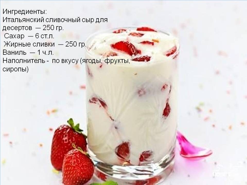 Классический парфе - очень вкусный и необычный итальянский десерт, нежный вкус которого заставляет полюбить это лакомство на всю жизнь. Кстати, приготовление парфе простое и позволяет фантазировать. Описание приготовления: Классический парфе делается очень легко и просто, не отнимает очень много времени. Единственная трудность - это выбрать правильный сыр. Однако его очень легко найти в супермаркетах. Обычный итальянский сливочный сыр для десертов, например, Маскарпоне. Как уже писала, при приготовлении этого десерта вы можете свободно включить свою фантазию и добавлять самые разные ягоды, фрукты, сиропы и так далее.