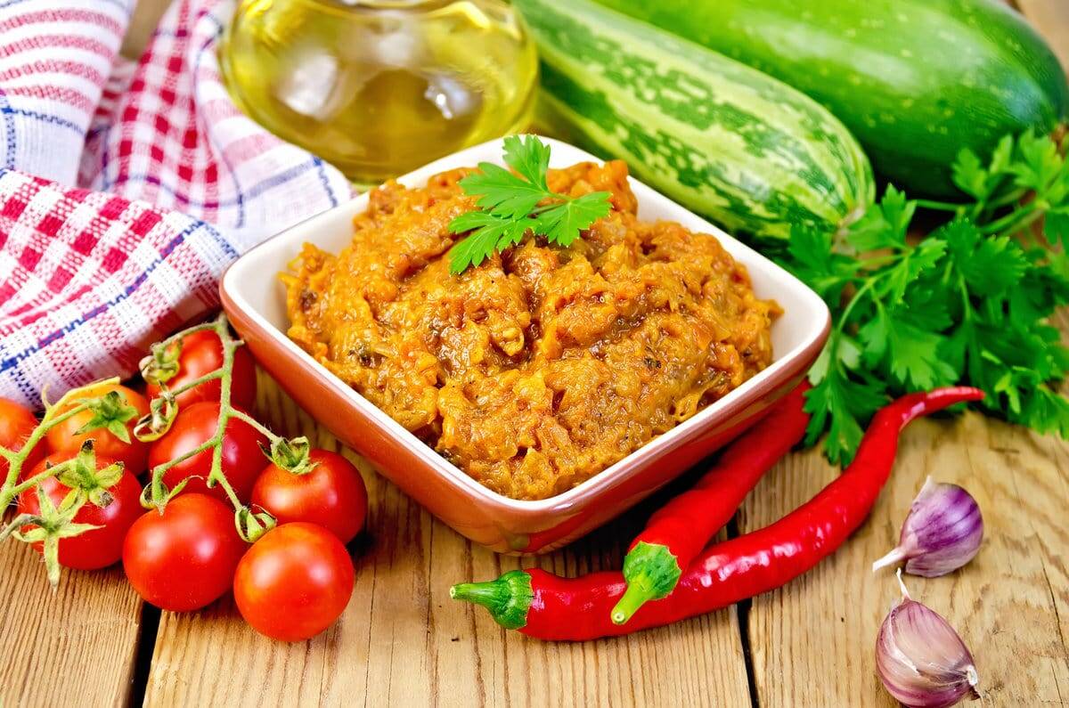 Производство кабачковой икры началось в 1930 году. С тех пор многие женщины научились готовить ее самостоятельно, но люди, которые жили в СССР, все еще вспоминают этот «деликатес». Он был придуман советскими технологами и готовился по определенному рецепту. Все это в прошлом. Сейчас в магазинах большой выбор разных продуктов, включая овощную икру, но вкус зачастую оказывается совсем «не тот». Неудивительно, на данный момент существует огромное количество простых и вкусных вариантов приготовления кабачковой икры. Даже опытные хозяйки зимой с сожалением выбрасывают плоды своих трудов, доверившись непроверенным кулинарным источникам. Чтобы у вас не возникло подобной ситуации, а эксперименты всегда удавались, обратите внимание на наши 10 самых лучших рецептов кабачковой икры на зиму.