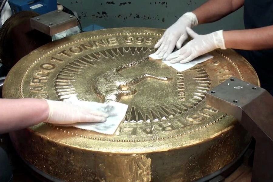 В 2011 году была выпущена самая большая золотая монета в мире – один миллион долларов. Этого гиганта весом тонну создали сотрудники Perth Mint, старейшего действующего монетного двора Австралии. Диаметр рекордного дензнака – без малого 80 сантиметров, а толщина — 12 см. Оценивается золотое чудо в 57 млн долларов (3,7 млрд рублей).