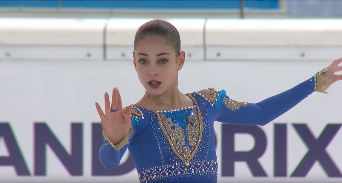 Добрый день! Пока нет никаких соревнований в настоящем времени, и нам не представлены новые программы, а тренировки и вовсе прекращены, предлагаю вам ознакомиться (а тем, кто следил за фигурным катанием несколько лет назад - вспомнить) с произвольной программой Алёны Косторной сезон назад. Это её последний год в юниорах, который ознаменовался победой в финале Гран-При. И этот статус Чемпионки Алёна смогла защитить уже среди взрослых спортсменов в 2019 году. Как это было, можно узнать в статье по ссылке (там и разбор произвольной 4 наших фигуристок, и награждение, много эмоций и всего интересного). Я это выступление, безусловно, смотрю не в первый раз, но, так как, в отличие от короткой и произвольной программы 2019 года, видела его всего пару раз, для меня по-прежнему там всё ново и какие-то детали открываю только сейчас. Сразу, конечно, обращаешь внимание на постановку рук перед началом программы: это очень изящно и необычно: Далее, что меня впечатлило - это Алёнины выезды