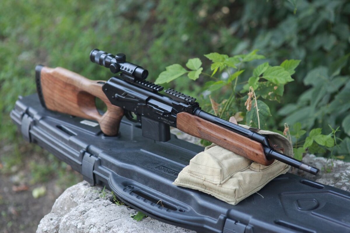 - Первое ружье семейства «Вепрь» было изготовлено на основе пулемета Калашникова на заводе «Молот» в 1995 году. В этот период руководство предприятия было вынуждено переориентировать его на выпуск продукции для гражданского населения из-за того, что Минобороны и иностранные клиенты снизили количество заказов до минимума. Этот карабин считается одним из лучших среди аналогичных конкурентов. Благодаря популярности, которую он завоевал не только у охотников, но и у организаций, занимающихся несением службы, охраной, он производится до сих пор, и имеет большое количество разнообразных модификаций, отличающихся друг от друга не только внешним видом, но и калибром. Для того, чтобы карабин имел большой срок службы, патронник и канал ствола покрываются хромом, что предотвращает быстрый износ рабочих поверхностей. В устройстве есть место для монтажа оптики, что позволяет использовать его для стрельбы на дальние расстояния. Устройство перезаряжается самостоятельно, используя при выстреле энергию отходящих газов и пружинный механизм. С целью обеспечения безопасности, на изделии установлен несъемный пламегаситель. Приклад оснащен амортизатором из резины, позволяющим смягчить отдачу при выстреле. Карабин Вепрь-308 (заводская модификация СОК-95) настроен для использования патронов Винчестер калибра 7,62.308, от которого и получил свое название. Даже без использования оптики, оружие позволяет вести прицельную стрельбу на расстояние до 300 метров. Магазинный отсек вмещает 5, 7, либо 10 зарядов