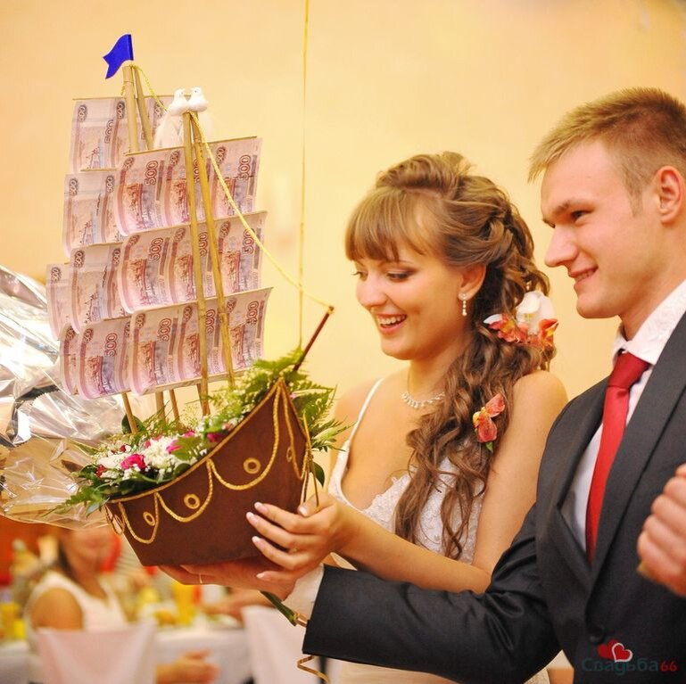 Как вы знаете самым сложным в процессе подготовки к какому-нибудь мероприятию является выбор подарка или презента. Своим близким постоянно приходится что-то выискивать, удивлять, а тут еще идешь в гости к людям малознакомым или к хорошо знакомым, но все-таки. И это еще только день рождения. А если это свадьба? Так можно совсем потеряться. Я предлагаю вам вот что — не терять голову, спокойно посидеть, подумать, выбрать в уме, а потом сходить и купить. Договорились? А я помогу Вам советом. Поехали. Источник фото 1. Деньги. Самый универсальный подарок. Именно о таком подарке просят большинство молодоженов в настоящее время. Ведь именно новоиспеченной семейной паре виднее на какие цели должны быть потрачены подаренные деньги. А давайте немного поразмышляем. Деньги всегда хорошо — можно их потратить, прогулять с друзьями. Но это будет сиюминутный результат. Но ведь хотелось бы, чтобы воспоминания о красивой и достойной свадьбе сидели в нас десятилетиями. Источник фото А для наиболее