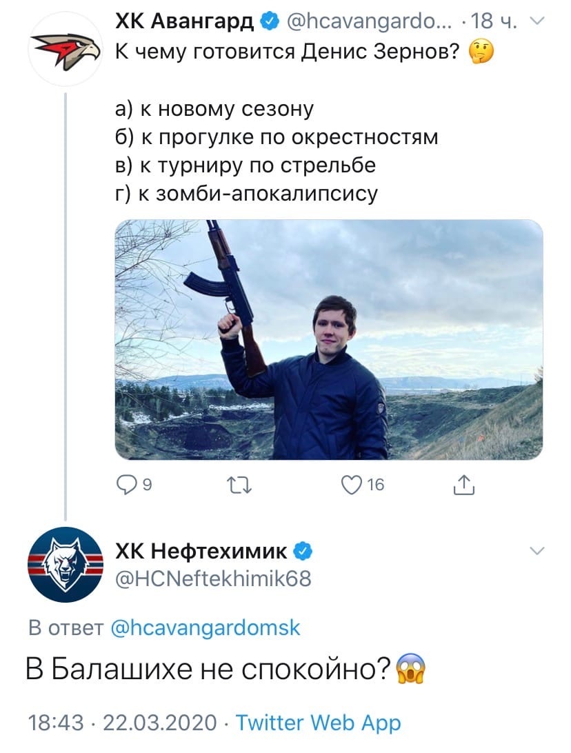 О Хоккее: новости:«Нефтехимик» о фото Зернова с автоматом: