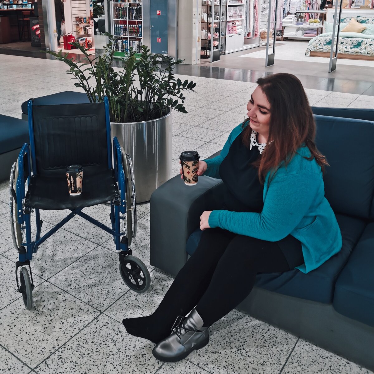 Когда я попала в больницу, то вместо костылей присвоила коляску. Было достаточно страшно пересесть в первый раз, но как только это получилось... Вжууух, вжууух 🌪️ И в палату заезжала с первого раза, и парковалась идеально, и коридор проезжала за 4 секунды 🙌 ⠀ Сразу сказала мужу, что хочу такую домой 😏 Без шуток. Так, 30 января я уже заезжала в квартиру на собственном транспорте самого модного цвета года по версии PANTONE. Шумахер выглядывал из под совести и осматривал повороты и подъезд к кровати - ну, нормально. Правда, не разгонишься 🤔 ⠀ Меньше, чем через месяц нам пришлось переехать. Мой внутренний шумахер матерился при столкновении с прихожкой и косяками 🤬 Зато визжал от счастья и свободы на прямой от двери до балкона ииии... резкий поворот налево, чтобы припарковаться на «раз-два» 👌 ⠀ Моей ласточке мало места дома, поэтому я пару раз выезжала прогуляться 🤗 Первый раз - в ДКЖ: пока муж ходил за водой, я рассекала по большой площадке перед домом культуры 🔥 Второй - в МЕГу: м