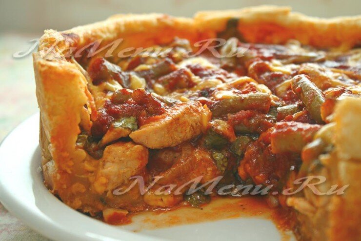 Ингредиенты: 🥠Разморозить тесто и спаржевую фасоль 🧅Куриное филе промыть и порезать на средние кусочки, но не мелко. Обжарить на сковороде с растительным маслом и порезанным кубиком луком 5 минут 🧄Томатную пасту и мелко нарезанный чеснок с небольшим количеством масла "припустить" на сковороде, а потом развести водой до консистенции соуса. Посолить, поперчить и добавить спаржевую фасоль, готовить 5 минут 🧀Форму для выпекания выстелить тестом и проткнуть его вилкой. На дно выложить почти весь тертый сыр, а затем куриное филе с луком 🍃Далее промытый и порезанный шпинат. В последнюю очередь форму наполнить соусом 🔥Сверху посыпают остатками сыра и ставят в разогретую духовку на 15-20 минут при температуре 180 https://namenu.ru/3492/CHikagskaya_picca/