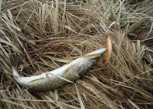 Ловля щуки в апреле на спиннинг ведётся с берега и предполагает активный поиск рыбы. Проводка приманки при ловле щуки в апреле должна быть плавной и не особо быстрой, а забрасывать приманку нужно в место предполагаемой засады хищника. При ловле щуки на спиннинг в апреле рыболову рекомендуется облавливать береговые вымоины, прибрежные ямы (заброс производить только на свал ямы) и перекаты с замедленным течением. Колеблющиеся блёсны лучше всего использовать в речных заводях, заливах и устьях притоков. Вариант проводки приманки зависит от типа самой приманки, для ловли щуки на блёсны используют равномерную проводку, на воблеры — рывковую (твичинг), а при ловле щуки на силикон применяют классическую ступеньку (джиг). В зависимости от активности рыбы в процессе ловли можно подобрать один из вариантов проводки приманки, в любом случае лучше начинать с равномерной проводки. При ловле щуки на вращающиеся блесны хорошей техникой ловли является волнообразная и ступенчатая проводка. Последняя